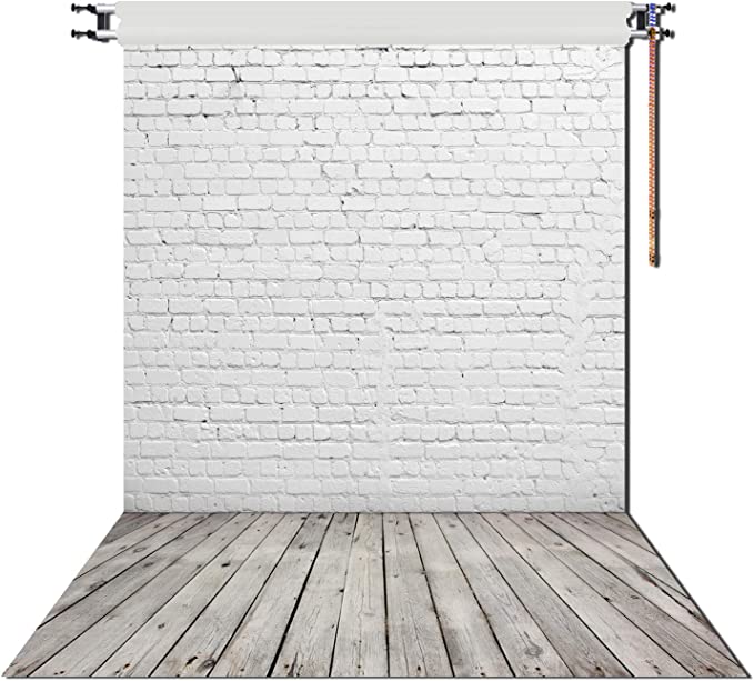 HUAYI 5X7ft White Brick Wall With Gray Wooden Floor